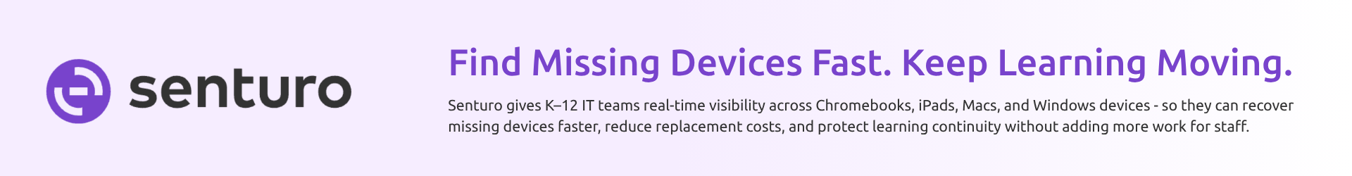 Never lose track of your district’s devices again. Senturo gives K-12 IT admins real-time location visibility for every device, helping prevent loss, reduce recovery time, and protect budgets. With precise tracking on Google Maps, it simplifies inventory management and device accountability.